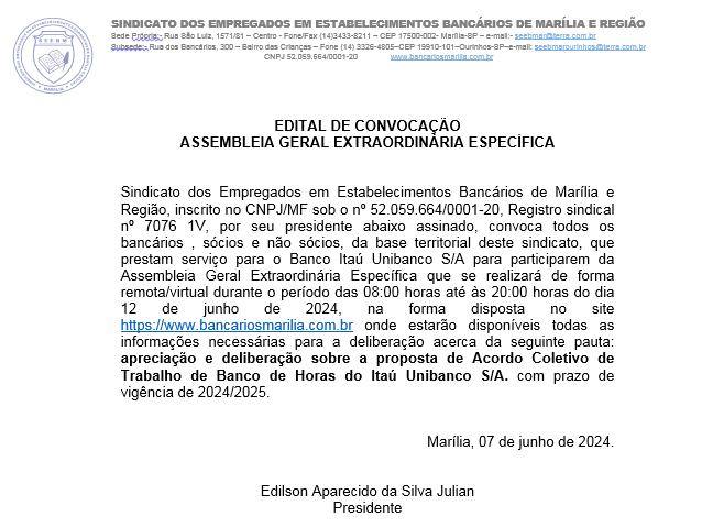 © 2026 Sindicato dos Bancários de Marília e Região. SINDICATO DOS EMPREGADOS DOS ESTABELECIMENTOS BANCÁRIOS DE MARÍLIA, OURINHOS E REGIÃO.